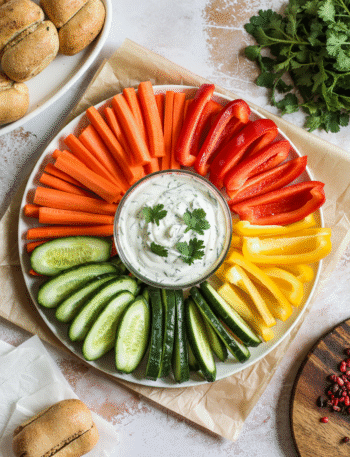 Snacking doesn’t have to feel heavy or indulgent to be satisfying — and this high-protein vegan ranch yogurt dip is …