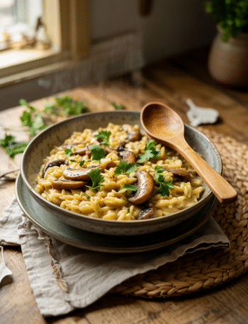 This Creamy Mushroom Orzo is pure cozy comfort — a dreamy, one-pot vegan dinner that tastes like risotto but takes …