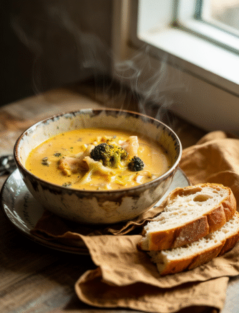 This Creamy Vegan Broccoli Cheddar Soup offers a cozy, guilt-free comfort food experience. With a thick and velvety texture made from blended cashews, carrots, and nutritional yeast, it achieves a rich, cheesy flavor without dairy or gluten. The addition of broccoli provides freshness, while garlic and onion lend a savory depth. This one-pot recipe is easy and quick, perfect for chilly nights. Image a warm bowl paired with crusty bread, creating a soothing atmosphere. It is a nourishing dish that elevates weeknight meals into comforting rituals, balancing indulgence with wholesome ingredients for body and mood.