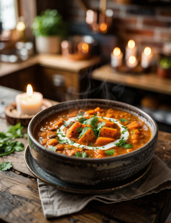This Creamy Sweet Potato Lentil Stew embodies the essence of cozy comfort food. It’s a rich and thick meal, combining creamy coconut milk, earthy lentils, and sweet roasted sweet potatoes, making it ideal for dinner while remaining light and balanced. This vegan, gluten-free dish is easy to prepare and clean up, providing nourishment and warmth. With its vibrant color and comforting aroma, it’s perfect for quiet evenings or impressing guests effortlessly.