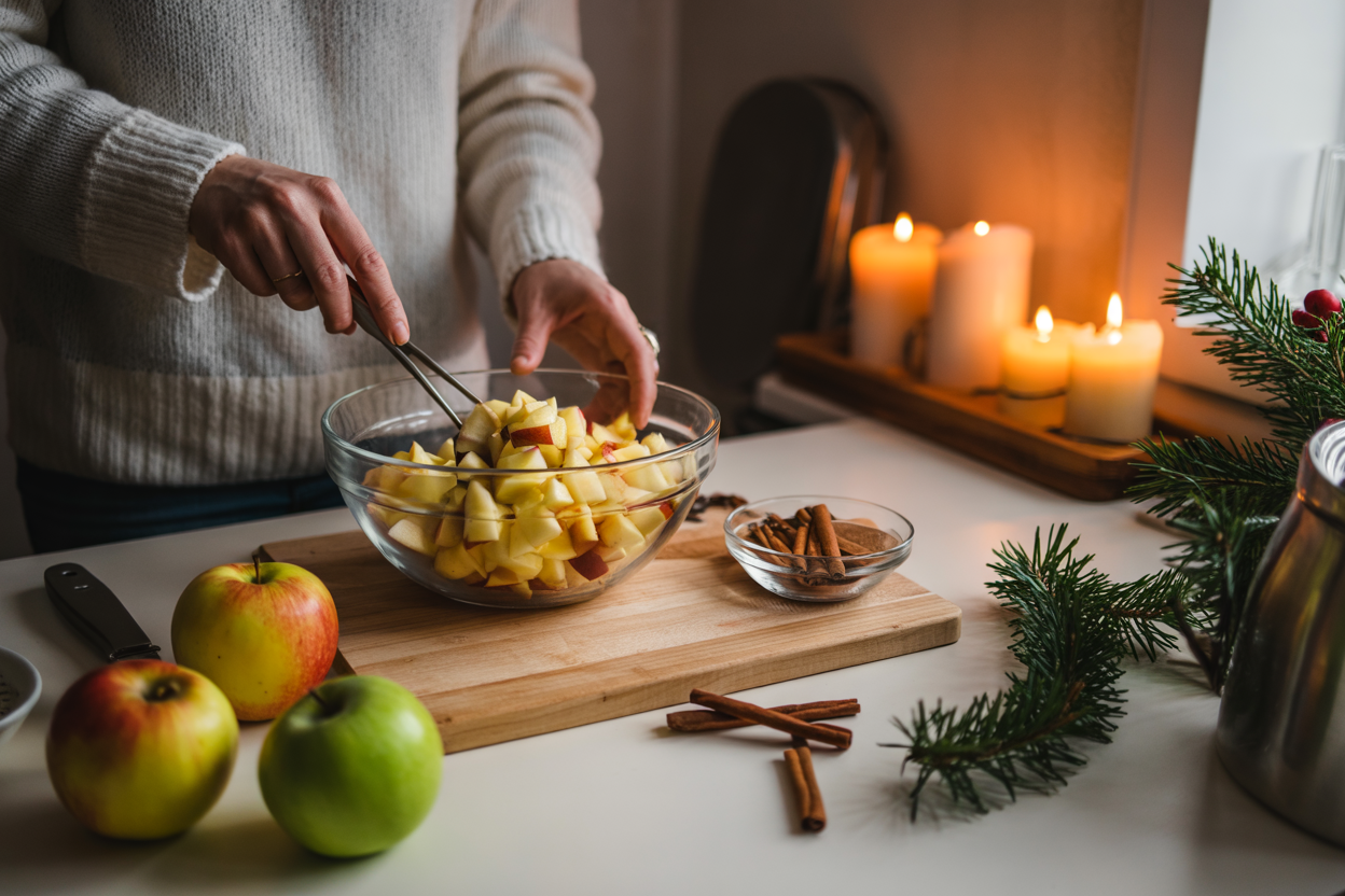 These warm cinnamon apple crumble cups are a fast, cozy vegan holiday dessert made in just 10 minutes โ soft apples, buttery crumble topping, and sweet cinnamon warmth. Perfect for Christmas hosting, snack boards, dessert tables, and holiday movie nights.