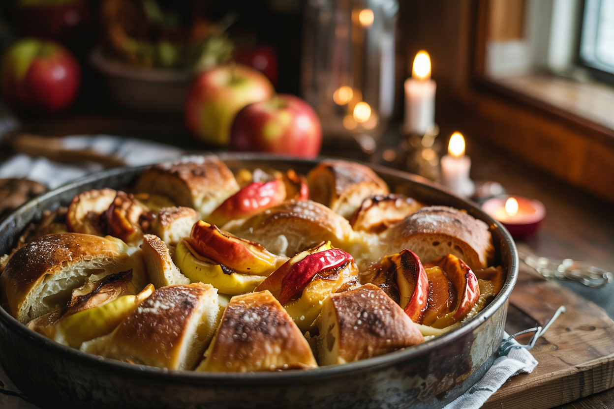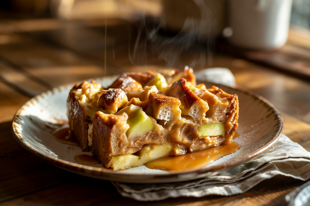 The smell of maple, apples, and cinnamon fills the air — soft bread inside, crisp edges outside.