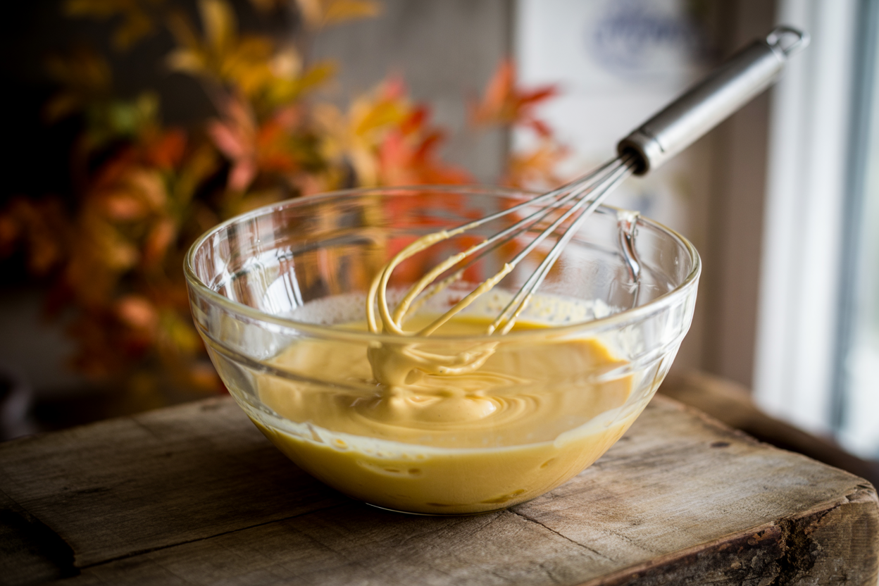 1. In a bowl, whisk almond milk, maple syrup, nutmeg, vanilla, and a pinch of salt.