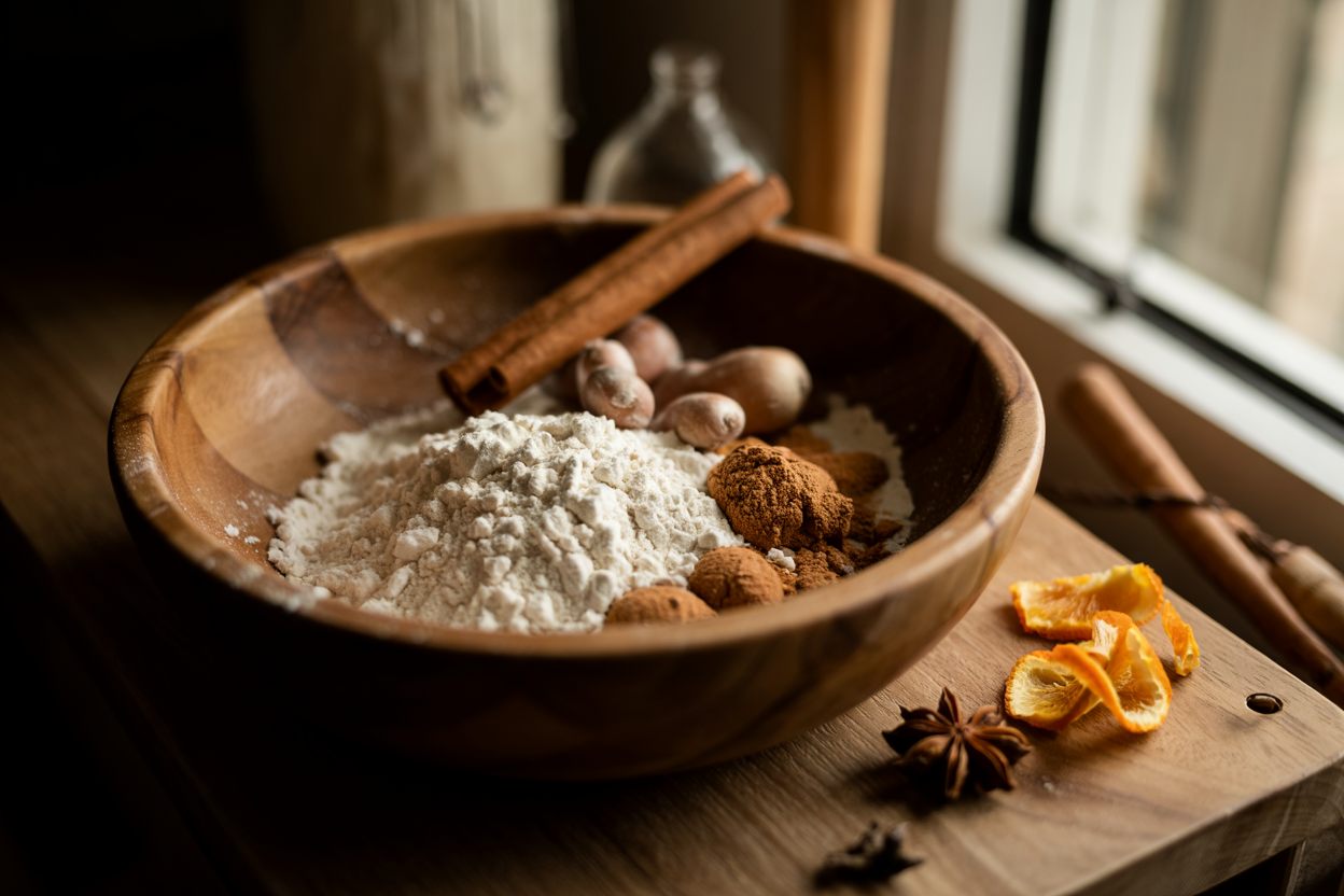This loaf captures that quiet, candle-lit December mood — the smell of ginger and maple in the air, a warm cup in your hand, and soft music in the background.