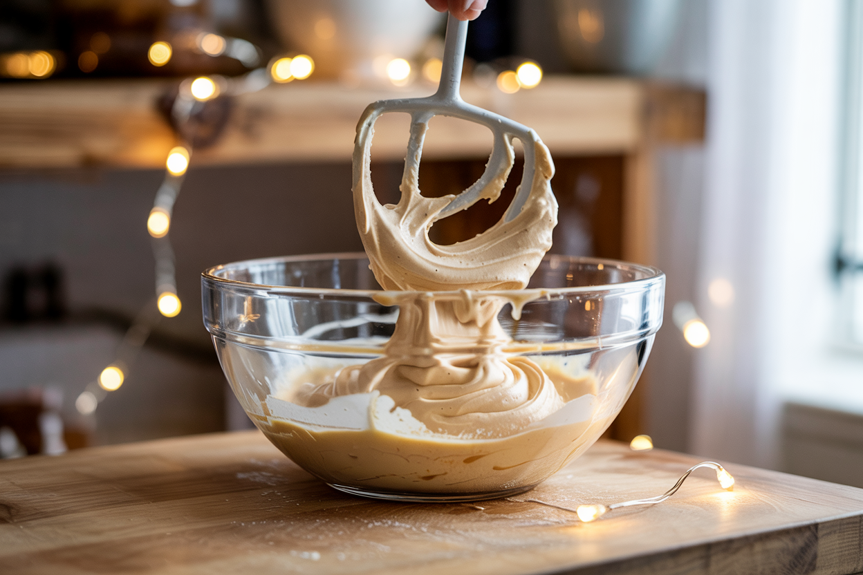 Beat vegan butter, powdered sugar, maple syrup, and cinnamon until fluffy.