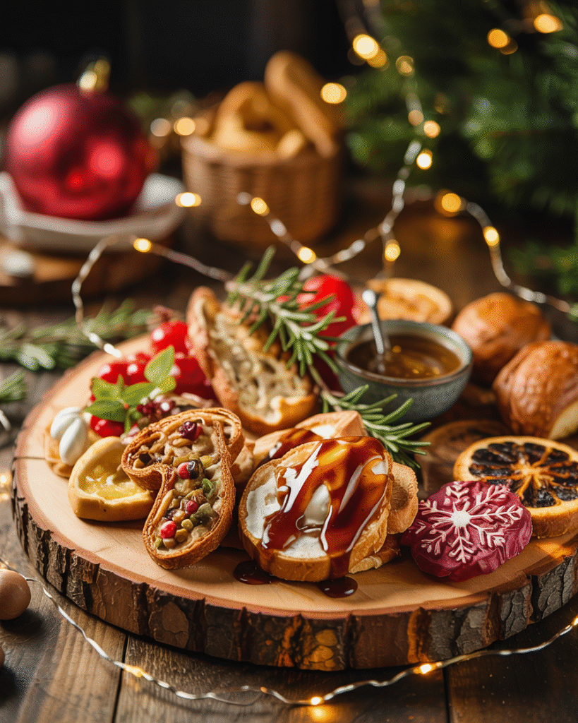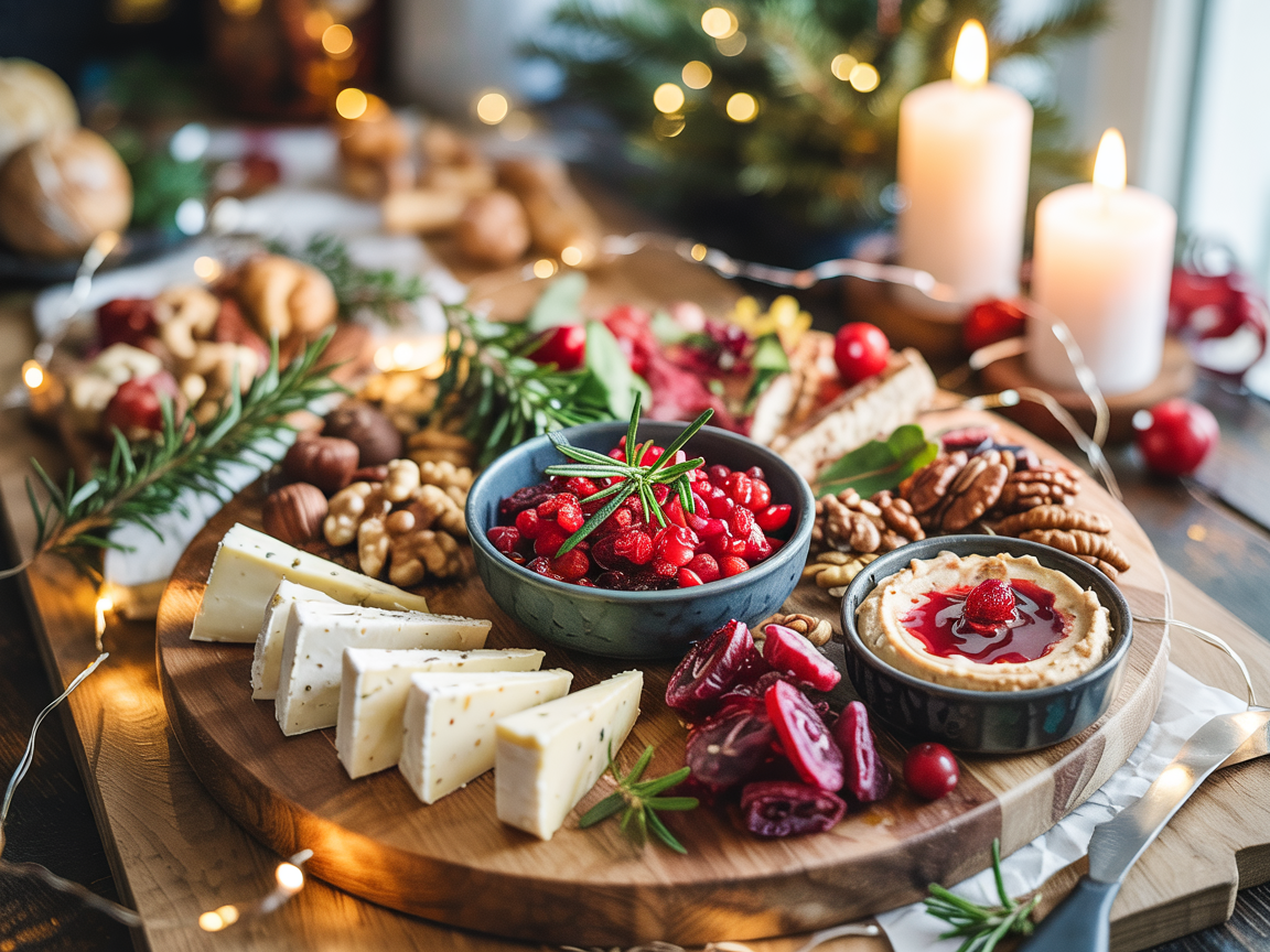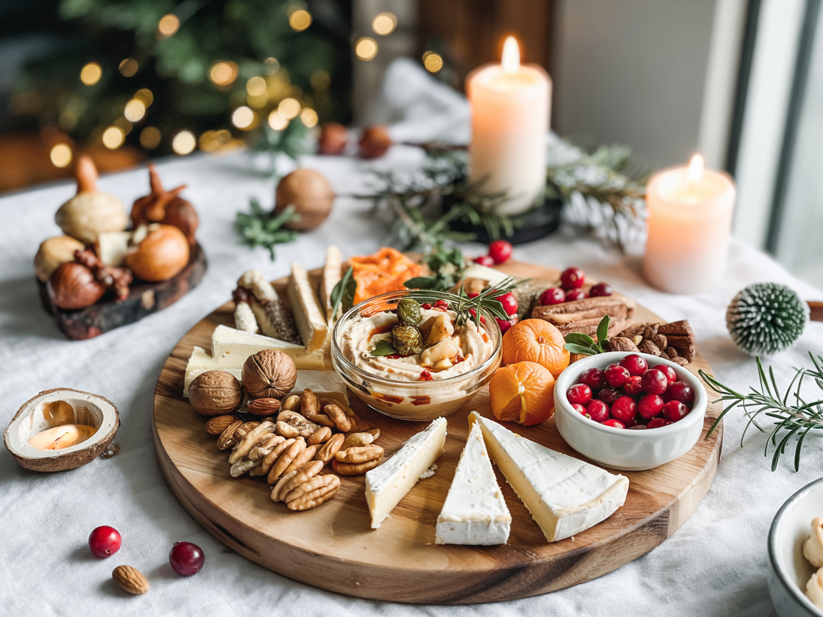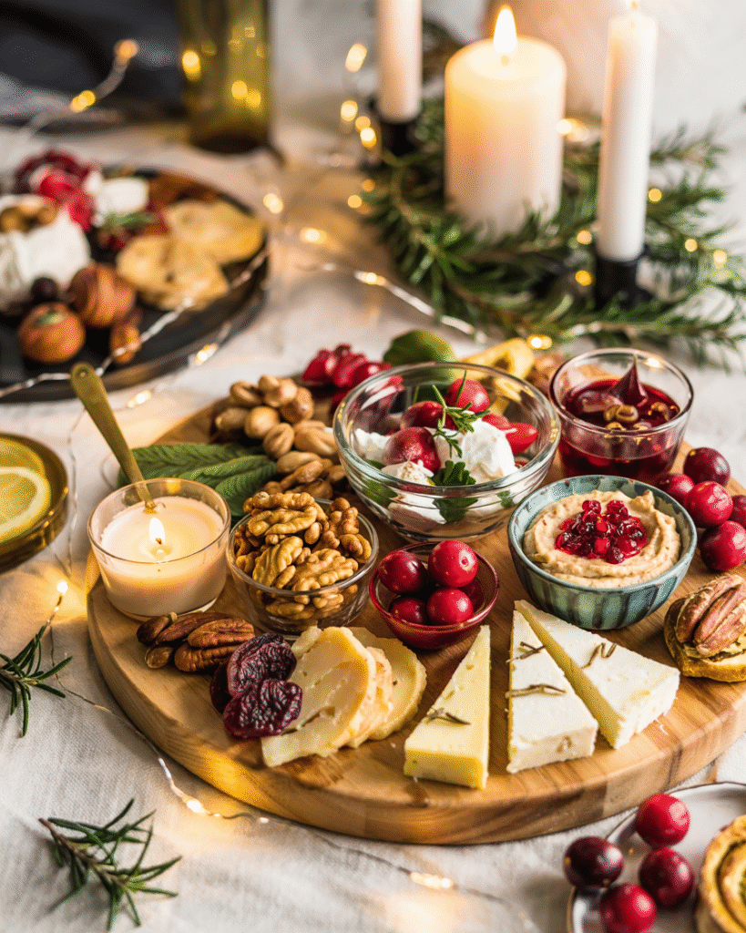 Think creamy hummus swirls, roasted nuts with maple glaze, cranberry compote, herbed crostinis, and dairy-free cheese wheels — all perfectly arranged for that Pinterest-perfect look. Whether you’re hosting family or a cozy night in, this plant-based board will make your evening feel straight out of a holiday movie.