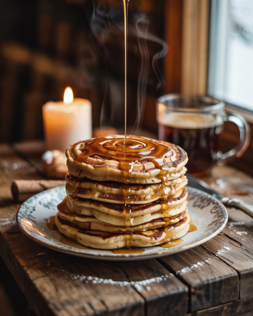 These pancakes capture everything cozy about winter mornings — soft, sweet, aromatic, and perfect with a mug of coffee or cocoa.