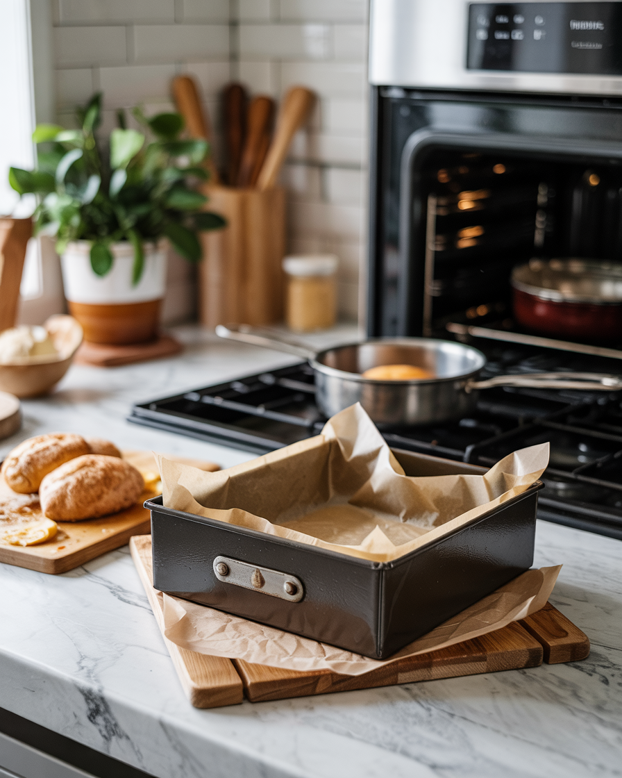 Preheat oven to 350°F (175°C) and line a small baking dish with parchment paper.