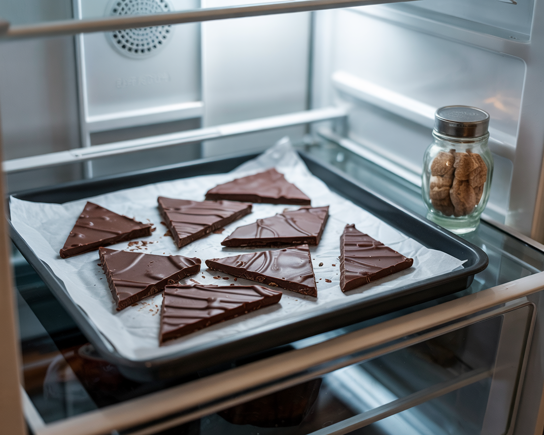 Refrigerate the tray until the chocolate is fully set.