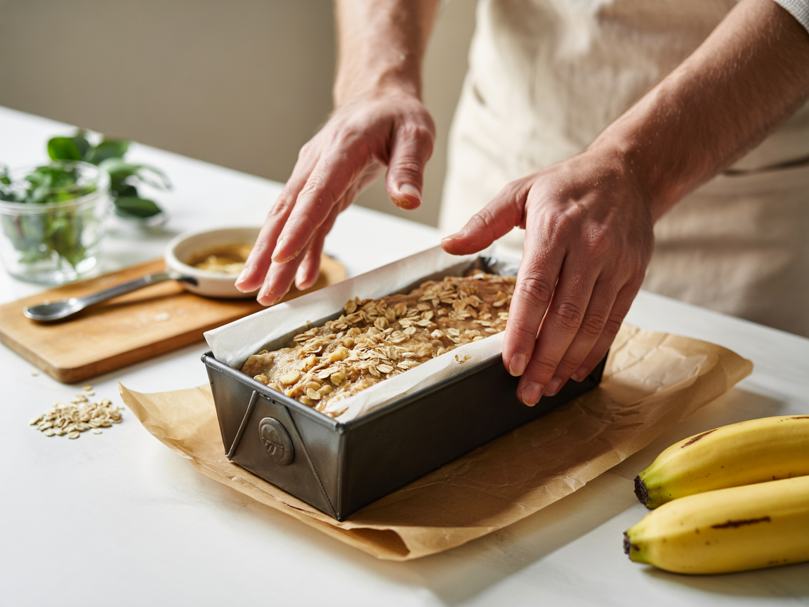 Press the mixture firmly into a parchment-lined loaf pan, smoothing the top evenly.