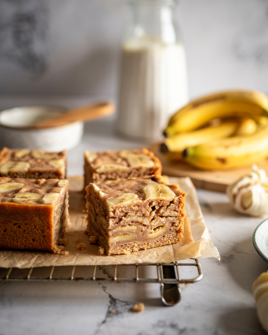 Banana bread protein squares (high-protein, healthy snack)