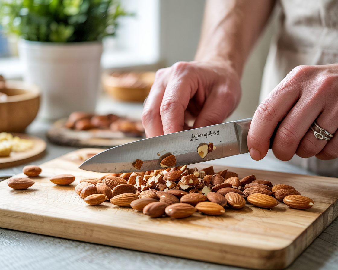 Roughly chop the almonds into small pieces to ensure even crunch throughout the bark.