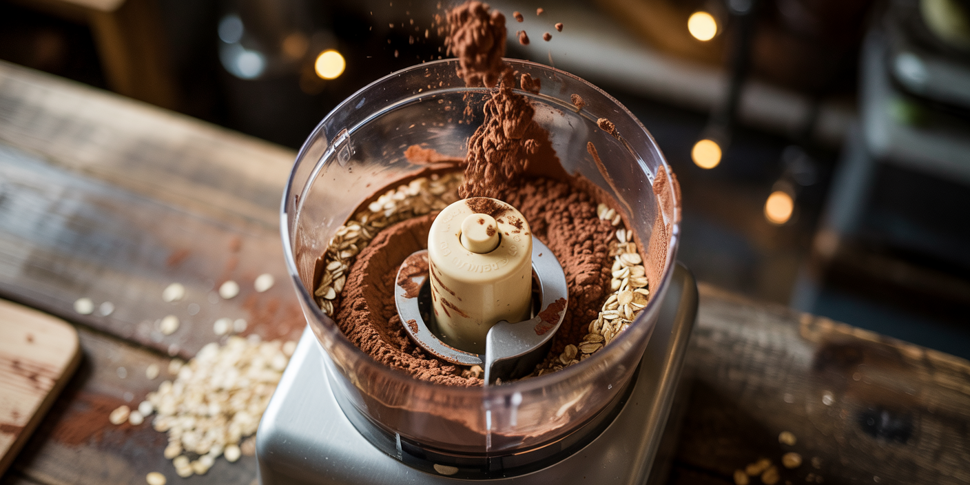 In a food processor, pulse oats and cocoa powder until the oats resemble a coarse flour.