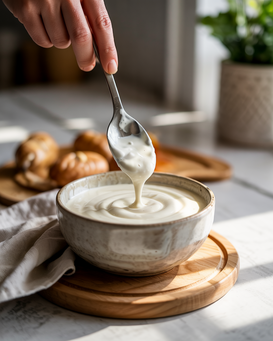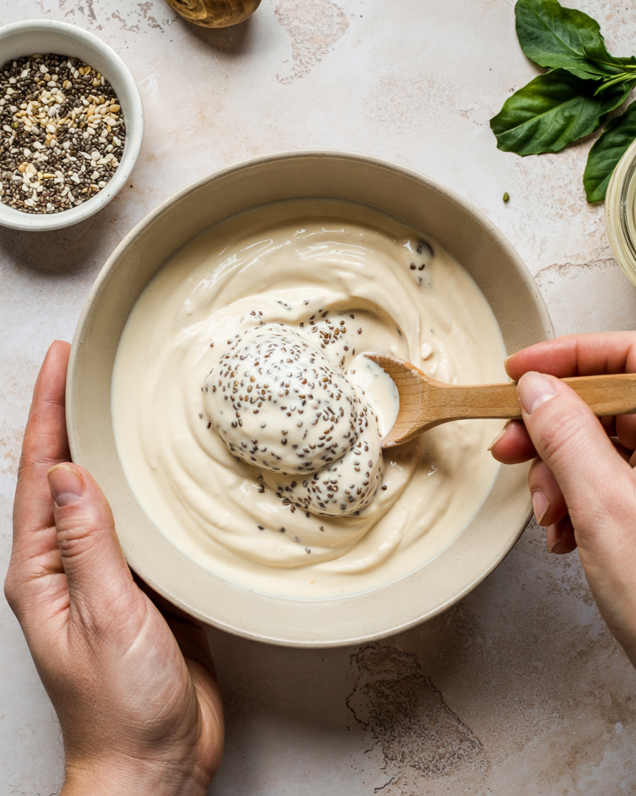 Use thick soy Greek-style yogurt to prevent watery consistency.
