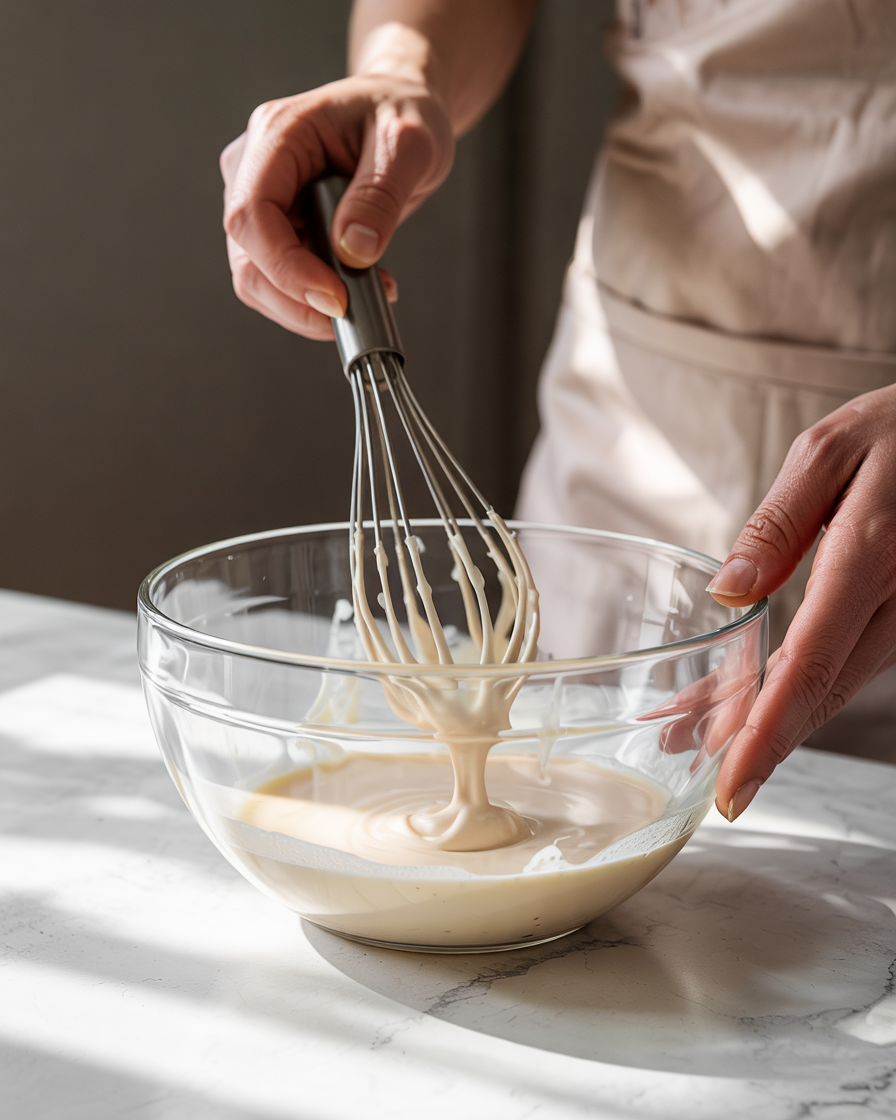 Add the vanilla protein powder and whisk thoroughly until completely smooth and lump-free.