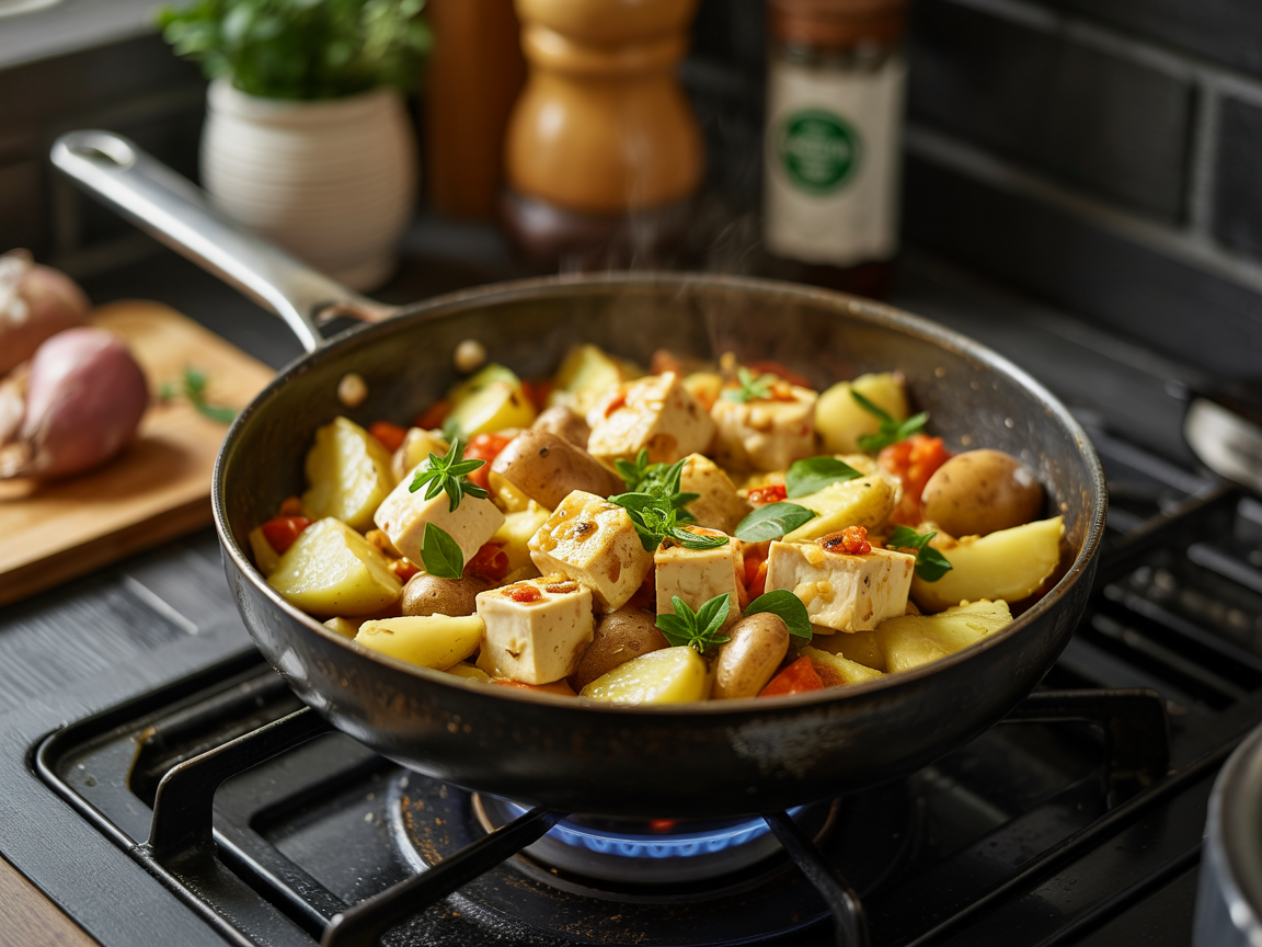 Savory breakfast bowls and hashes continue to trend because they provide structure and satisfaction without relying on sugar. This version leans into simple ingredients cooked well: seasoned tofu for protein, vegetables for freshness, and a light pan-crisping that creates texture without heaviness. Every bite feels cozy, warm, and balanced.