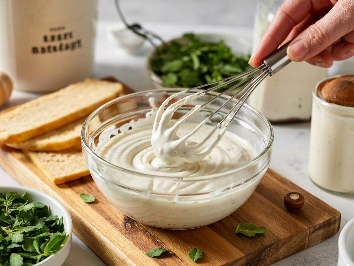 Add vegan yogurt, mayo, lemon juice, and all seasonings to a mixing bowl.