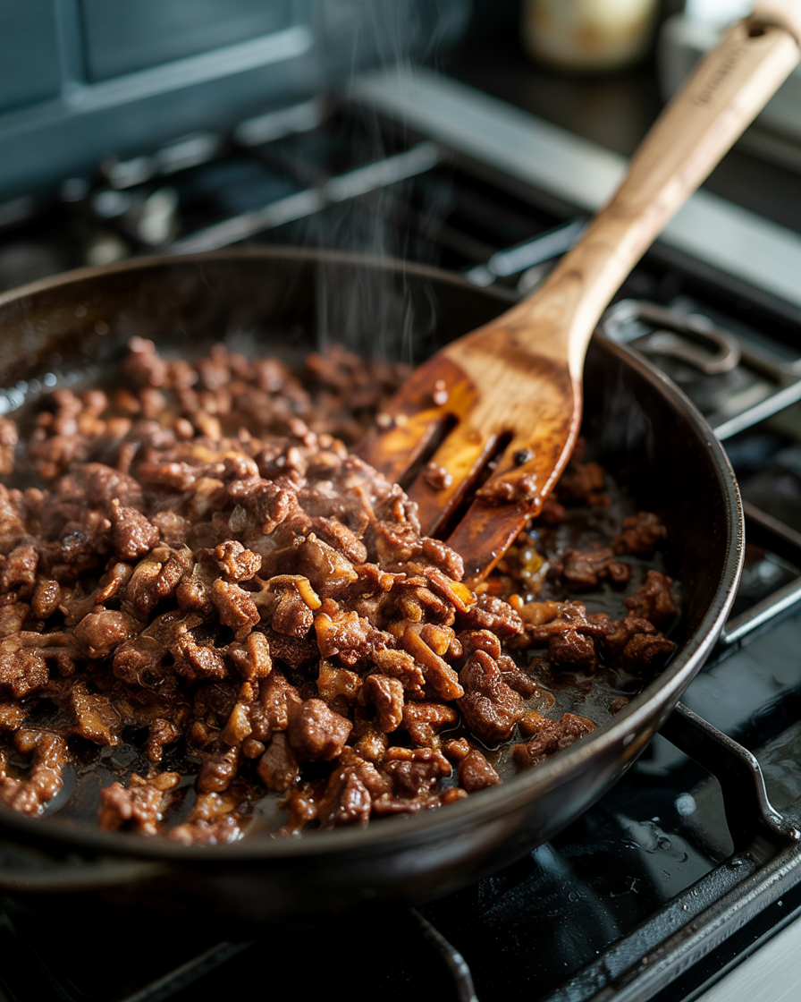 To truly appreciate the brilliance of this recipe, one must understand the fascinating culinary science behind gluten hydration and savory umami layering. Unlike tofu or tempeh, which rely on the delicate protein structures of the soybean, seitan is composed almost entirely of isolated wheat protein. When you take this pure, powdered protein and subject it to liquid hydration and mechanical kneading, you are physically aligning the protein strands into a dense, chewy matrix. The mechanical friction and resting process forces these highly elastic proteins to bind together into an incredibly meat-like texture. The resulting dough is completely transformed from a simple flour into a high-performance, muscle-building powerhouse. When pan-seared and broken down, this hydrated gluten matrix resists turning mushy or dissolving into your sauces, a common failure in typical healthy, bean-based ground meat recipes. Instead, you are left with a dense, incredibly satisfying mouthfeel that holds its shape, completely masking its plant-based origins and absorbing whatever deep, savory flavor profiles you introduce to it.