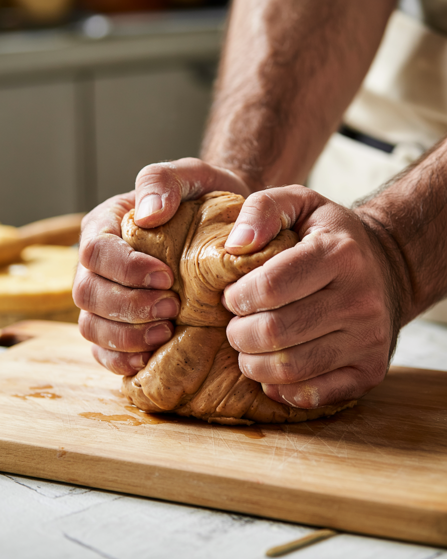 Using a silicone spatula, mix the wet and dry ingredients together until a shaggy dough begins to form. Once it becomes too thick for the spatula, use your hands to knead the dough directly in the bowl for exactly two to three minutes. You must continue kneading until the dough becomes elastic, firm, and all the dry spots are fully integrated.