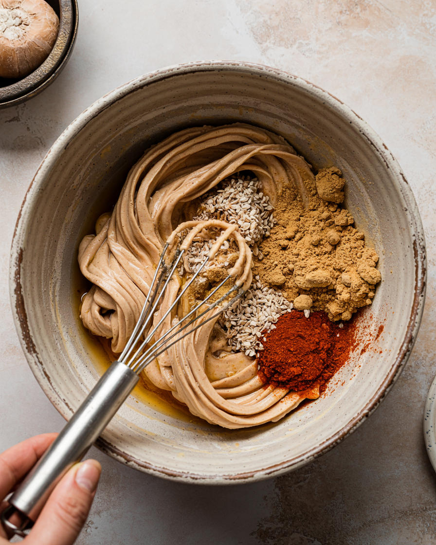 Balance The intense, savory umami of the soy sauce and tomato paste is perfectly balanced by the earthy, robust notes of the smoked paprika and nutritional yeast, completely eliminating the naturally “bready” flavor of raw wheat gluten.