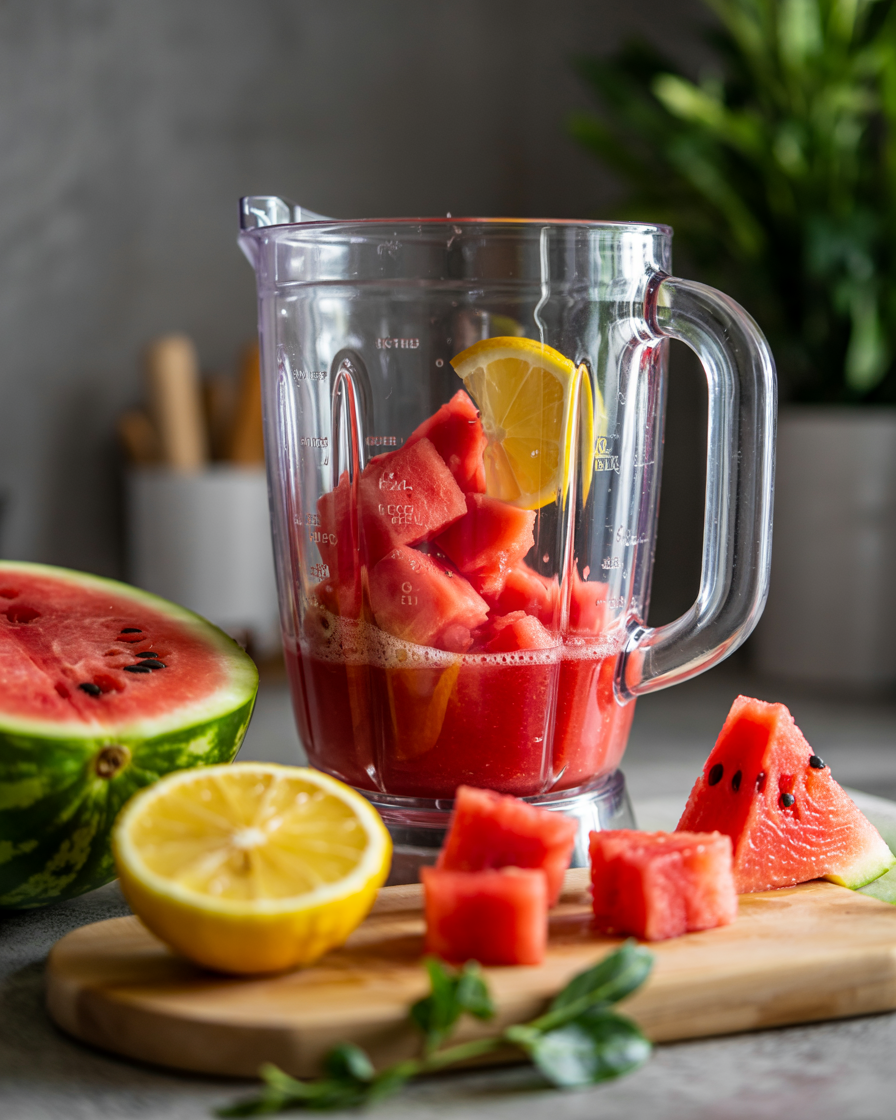 In a blender or food processor, combine watermelon cubes and lemon juice. Blend until smooth.