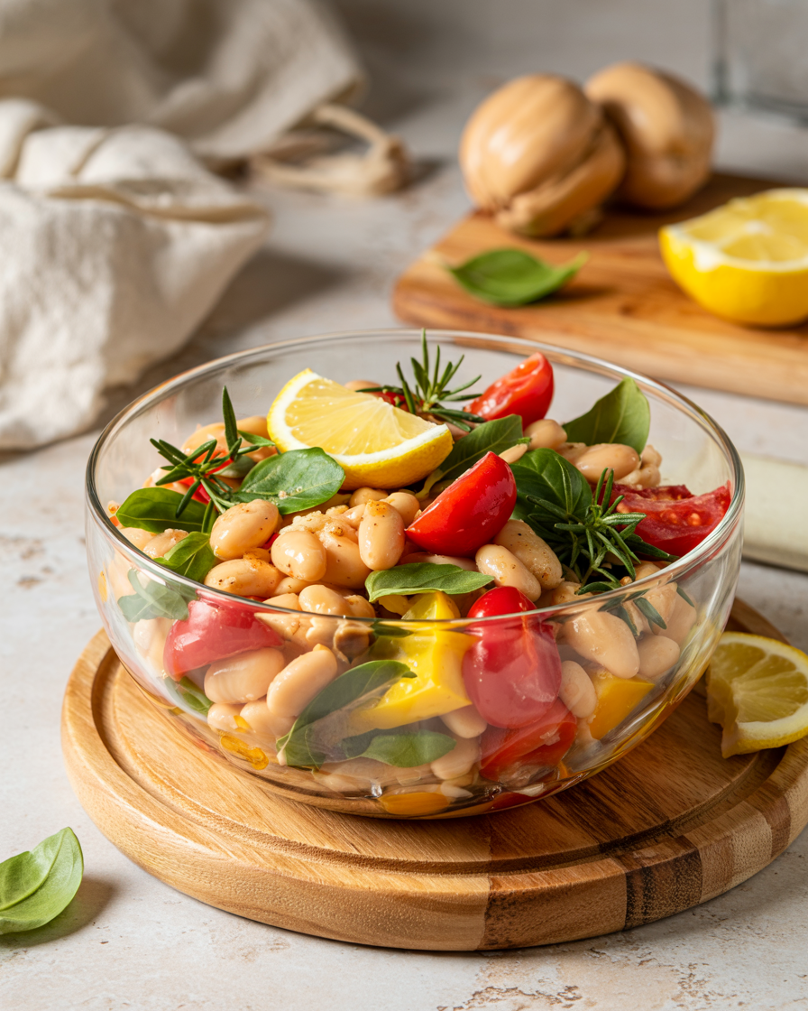 This Mediterranean white bean and cucumber salad is crisp, protein-rich, and no-cook. It’s light, refreshing, and ideal for meal prep.