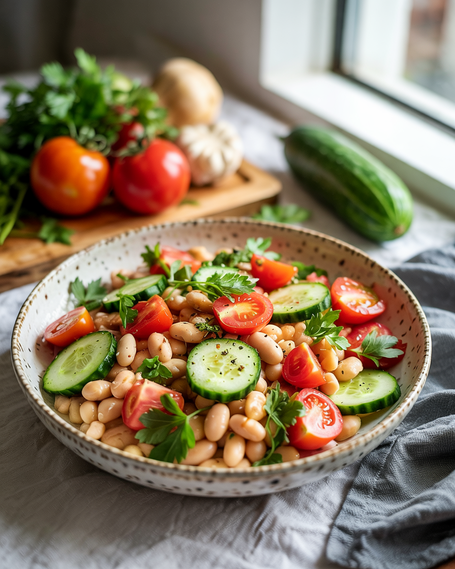 Mediterranean White Bean & Cucumber Salad (High Protein, No Cook & Fresh)