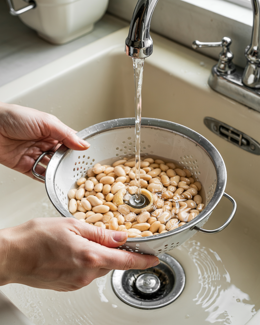 Rinse white beans thoroughly and drain completely to remove excess moisture.