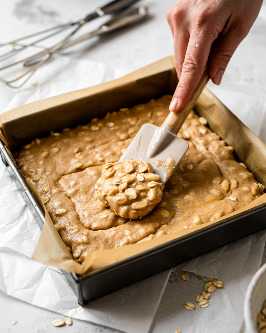 Press the batter firmly into the pan so the bars hold together.