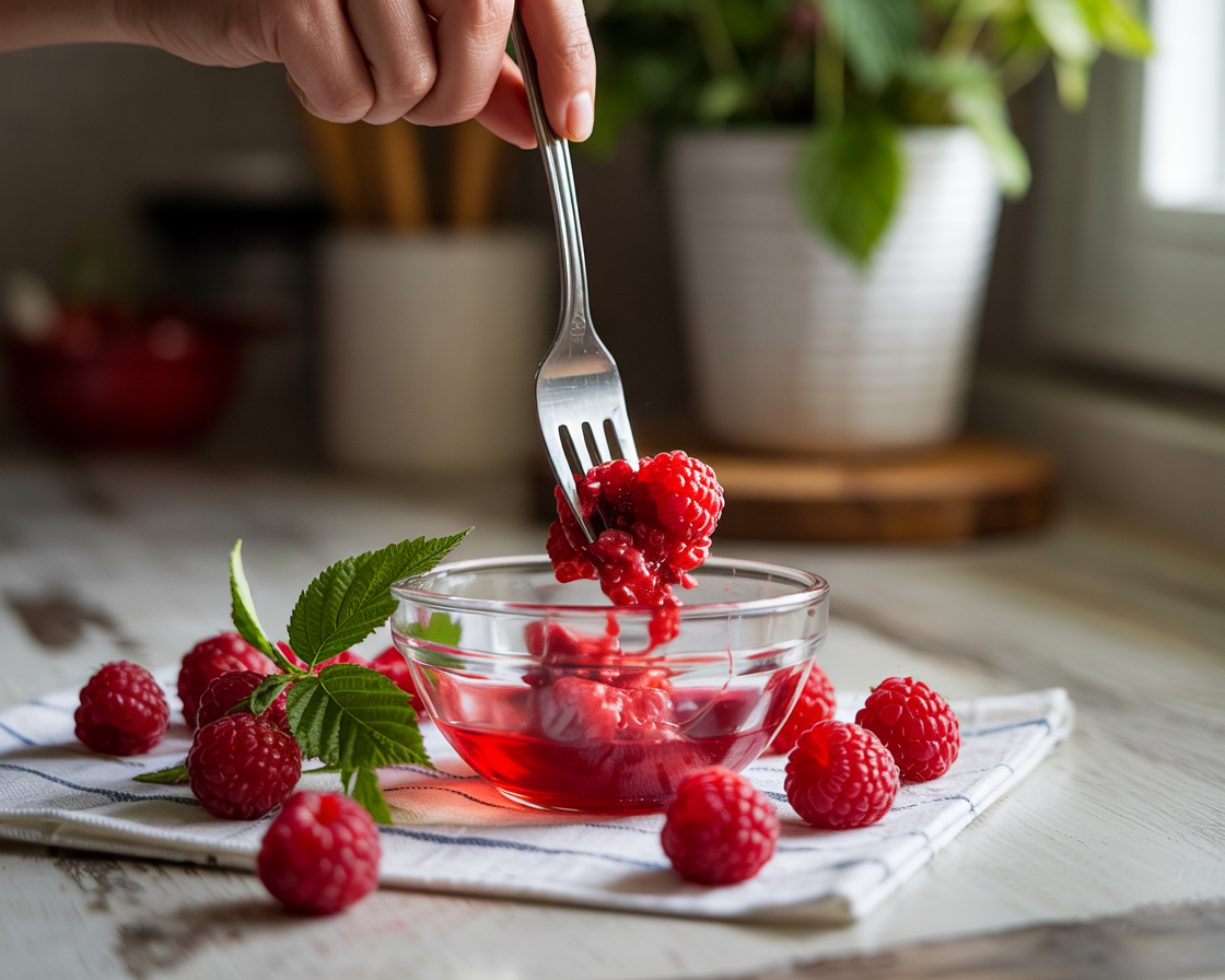 Mash fresh raspberries lightly with a fork until juicy but still textured.