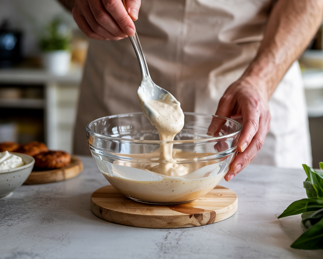 In a bowl, mix plant-based yogurt, protein powder, sweetener, and vanilla extract until smooth and thick.