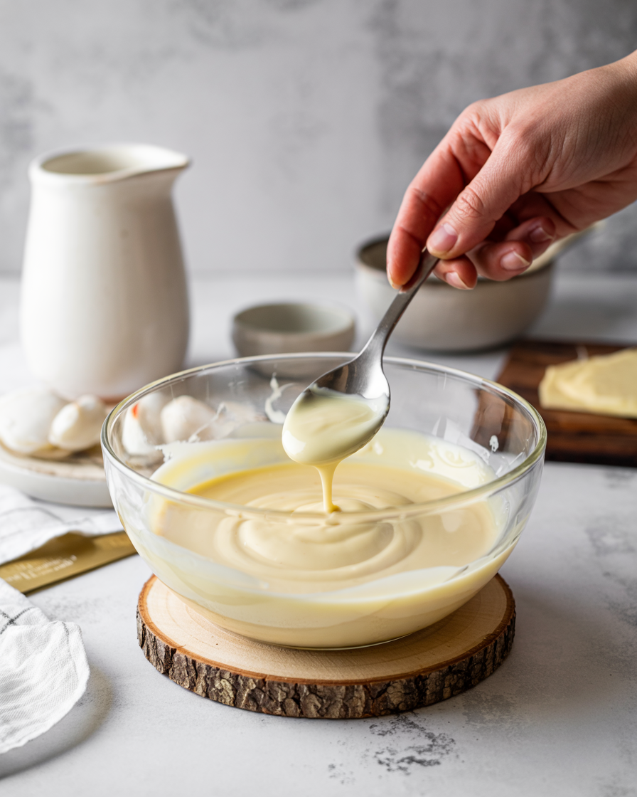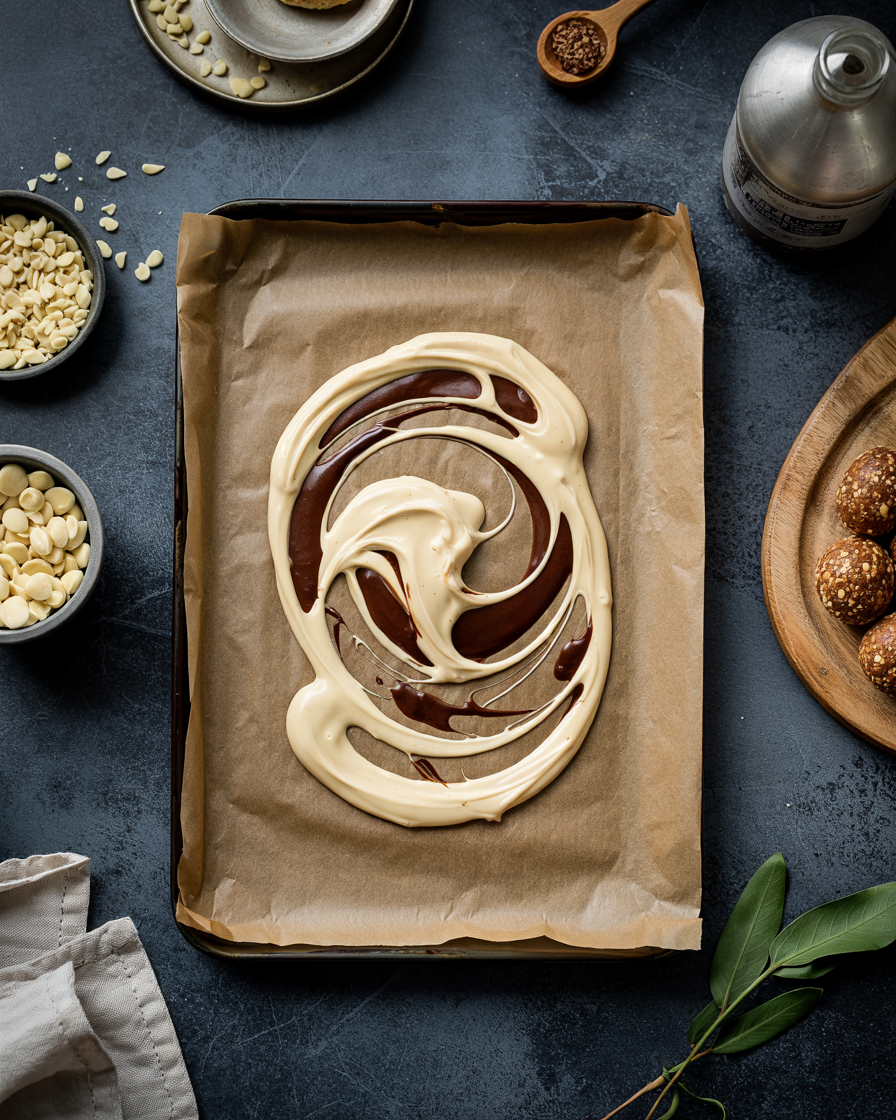 Add dairy-free white chocolate chips and coconut oil to a heat-safe bowl. Melt gently using a double boiler or microwave in short intervals, stirring until smooth.
