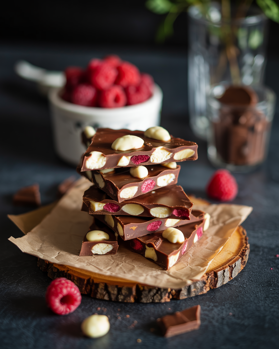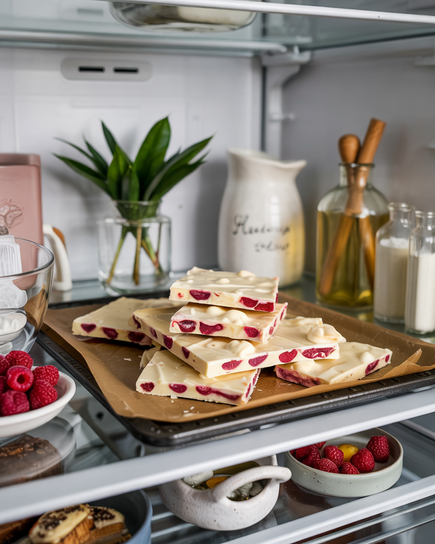 This bark is intentionally thin, which allows the white chocolate to snap cleanly while still melting smoothly on the tongue. The raspberries soften slightly as the chocolate sets, creating a pleasant contrast between creamy and juicy textures.
