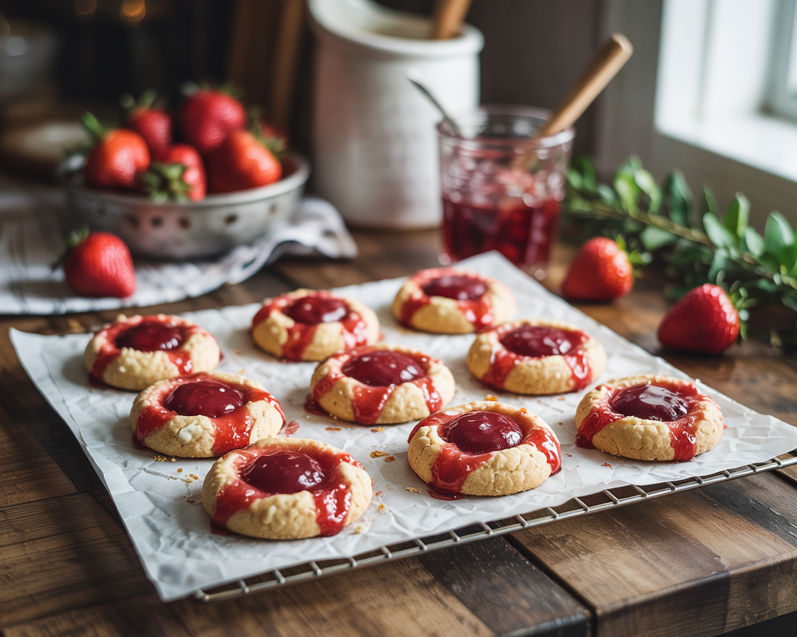 These strawberry thumbprint cookies are the kind of treat you bake when you want something cute but not stressful. The dough comes together easily, the shaping is fun, and the jam-filled centers make every cookie look bakery-worthy without any fancy tools.