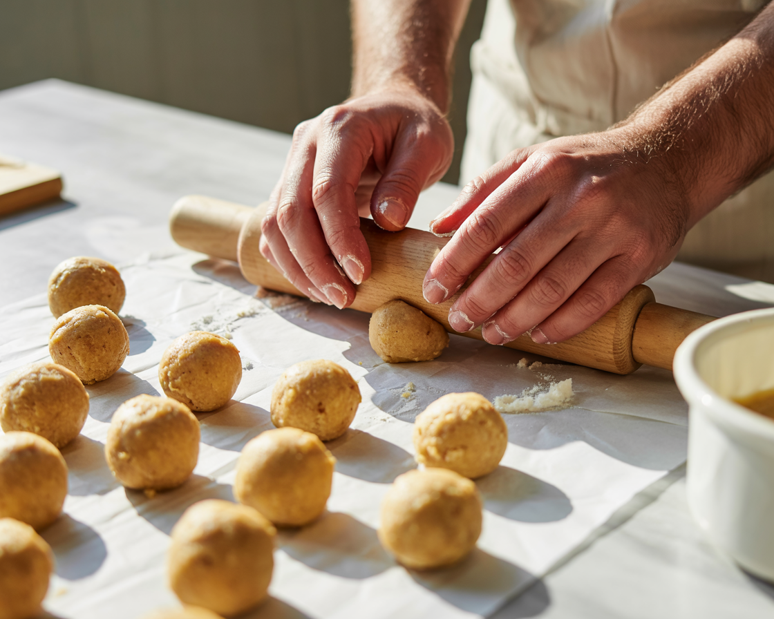 Scoop small portions of dough and roll into smooth balls using your hands.