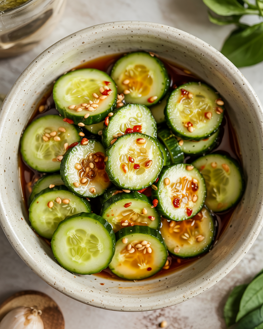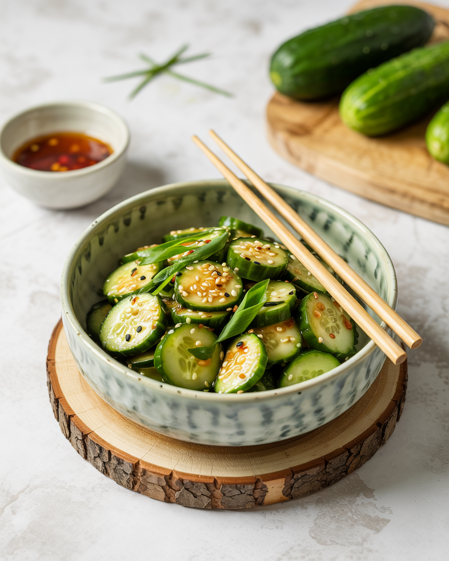 The key to this salad is balance. The soy sauce adds saltiness, rice vinegar brings acidity, sesame oil adds depth, and maple syrup softens the edges. Chili flakes provide gentle heat without overpowering the freshness of the cucumbers.