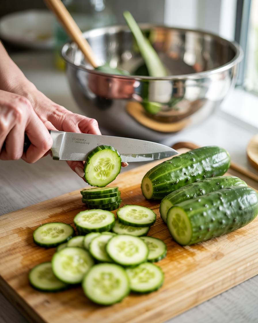 Step 1 — Slice the cucumbers