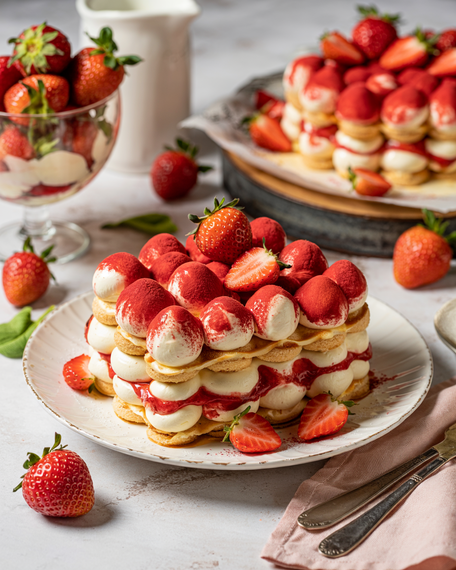 Tiramisu is having a moment again—but not in its classic espresso-heavy form. What’s trending now are lighter, fruit-forward versions that feel fresher, brighter, and easier to serve. Strawberry tiramisu in particular has exploded because it replaces heaviness with softness and contrast: juicy fruit, creamy layers, and delicate biscuits that soak without becoming dense.