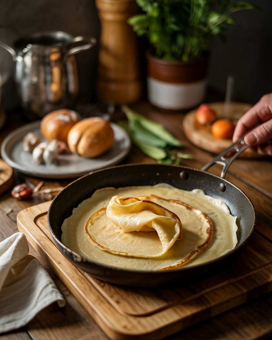 Heat a non-stick pan over medium-low heat. Pour a thin layer of batter into the pan and spread evenly. Cook for 2–3 minutes per side until soft and flexible.