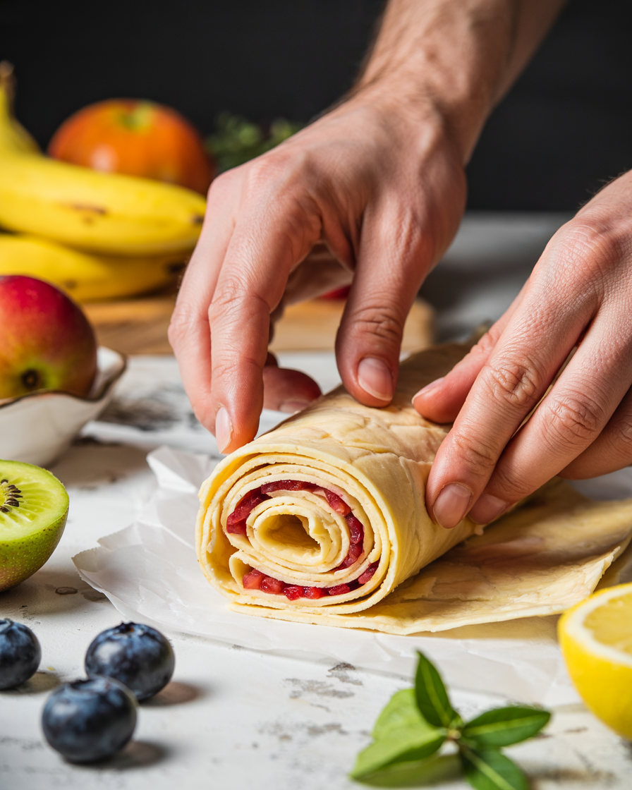 These roll-ups are intentionally soft rather than crisp, allowing the fruit filling to stay moist and balanced. The banana adds natural sweetness, while strawberries bring brightness and light acidity that keeps the dessert from feeling heavy.