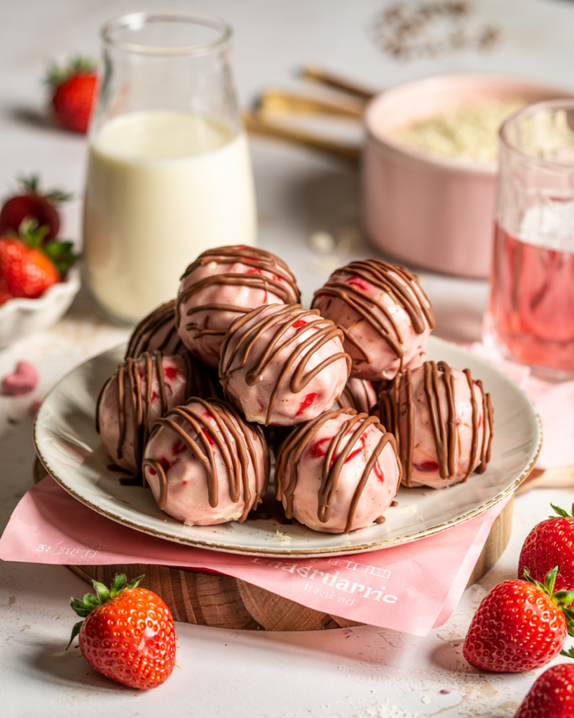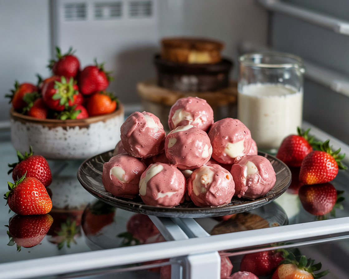 They’re inspired by classic strawberry cheesecake flavors but transformed into an easy, no-bake treat that’s soft, creamy, and satisfying. The strawberry adds freshness, the cheesecake base keeps things rich, and the protein makes them feel a little more balanced.