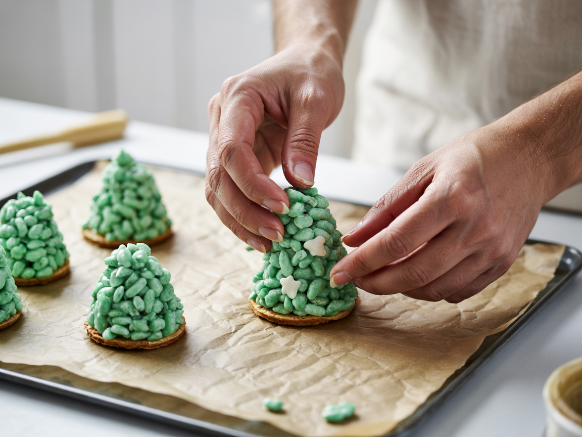Scoop handfuls and form small cone-shaped Christmas trees.