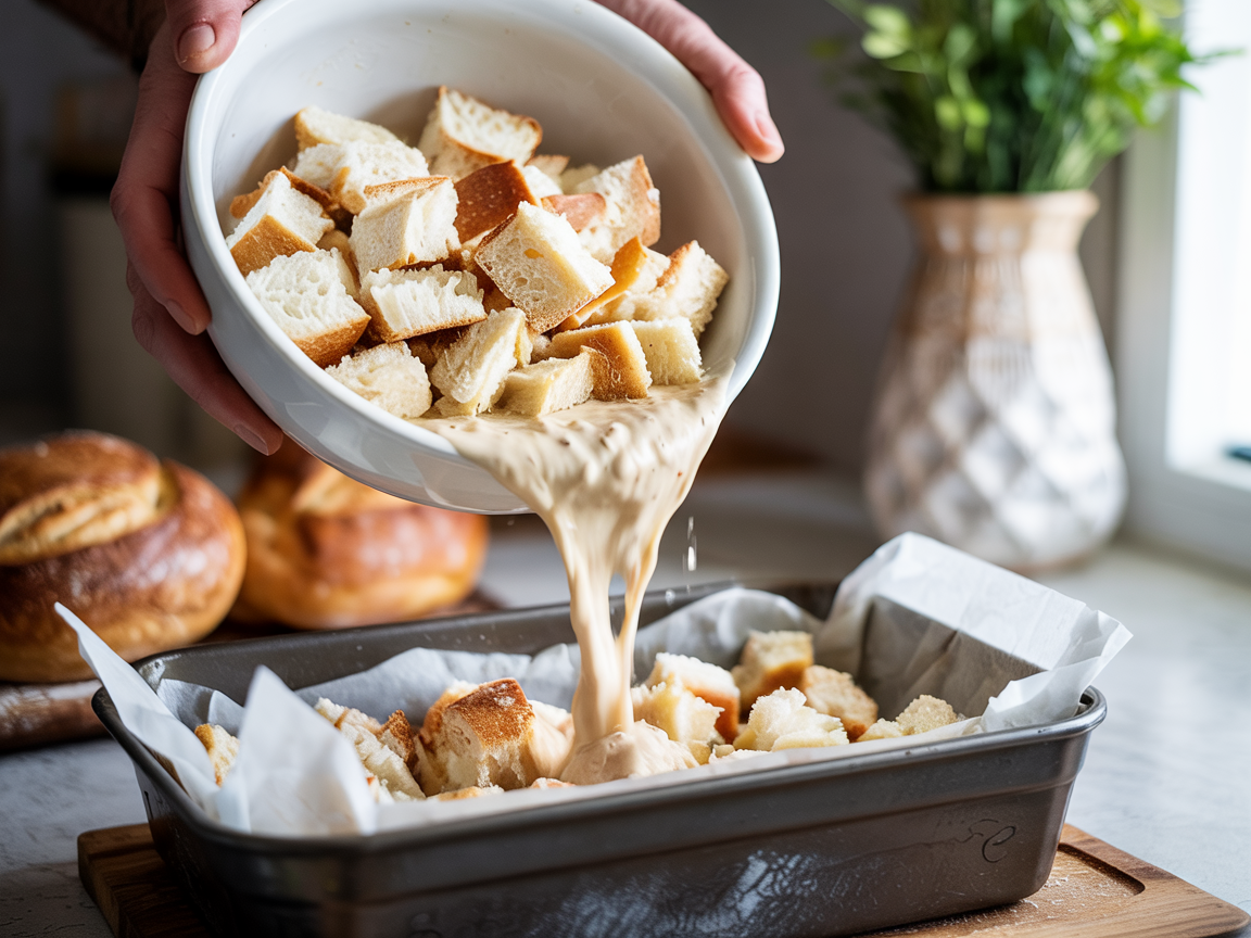 - For extra moisture, press bread lightly into the custard