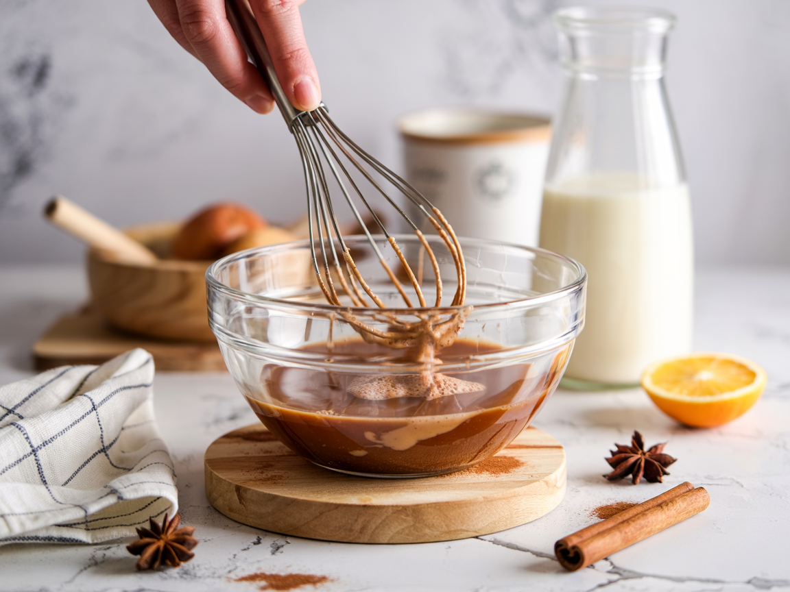 Whisk plant milk, coconut milk, maple syrup, cinnamon, vanilla, flaxseed, and salt until smooth.