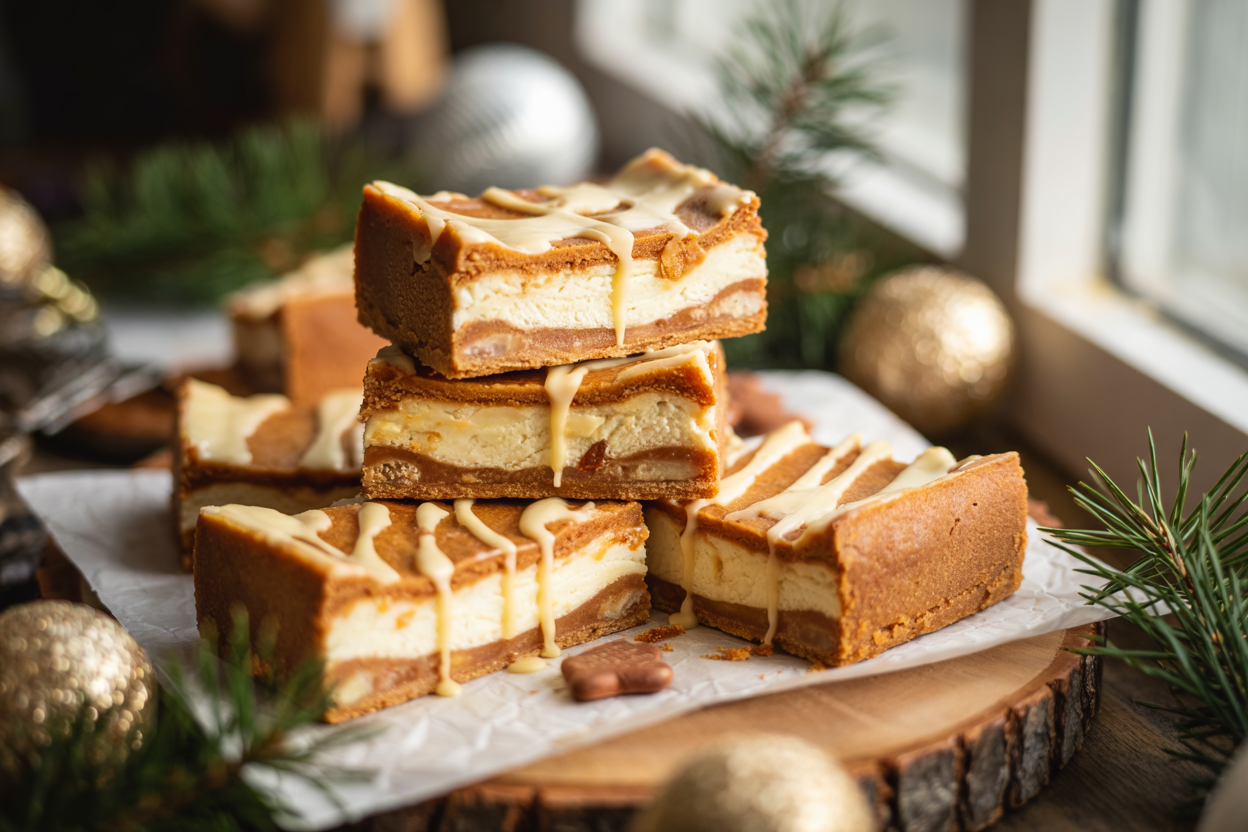 These Vegan Gingerbread Cheesecake Bars are rich, creamy, and warmly spiced with cinnamon, ginger, and nutmeg. A buttery gingerbread crust meets a velvety cashew cheesecake filling for the ultimate festive treat — vegan, dairy-free, and perfectly indulgent for the holidays.