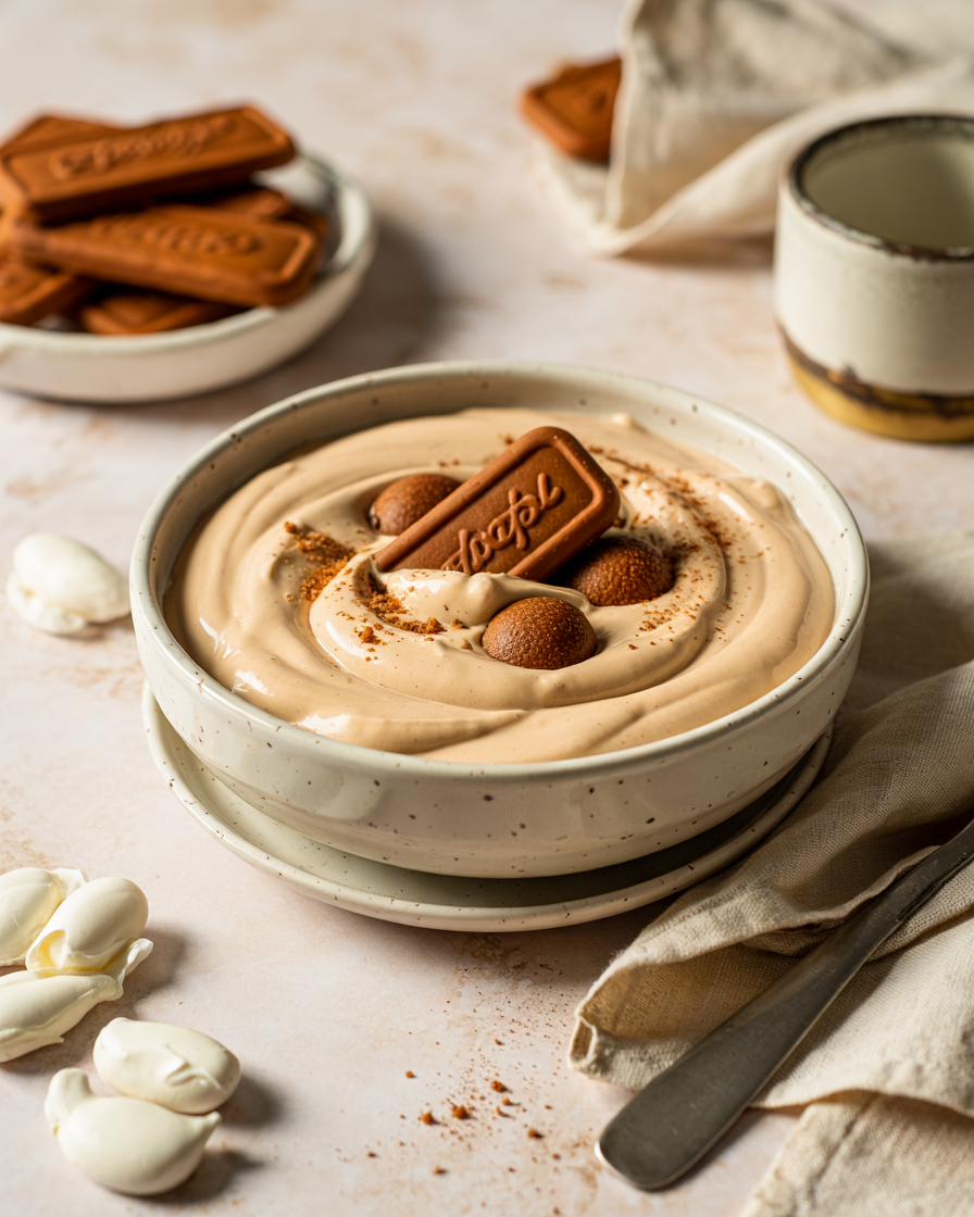 This dessert is intentionally thick but not heavy. The yogurt base provides creaminess, while protein powder adds structure and staying power. Biscoff delivers warmth and spice without requiring large amounts, which helps prevent sweetness overload.