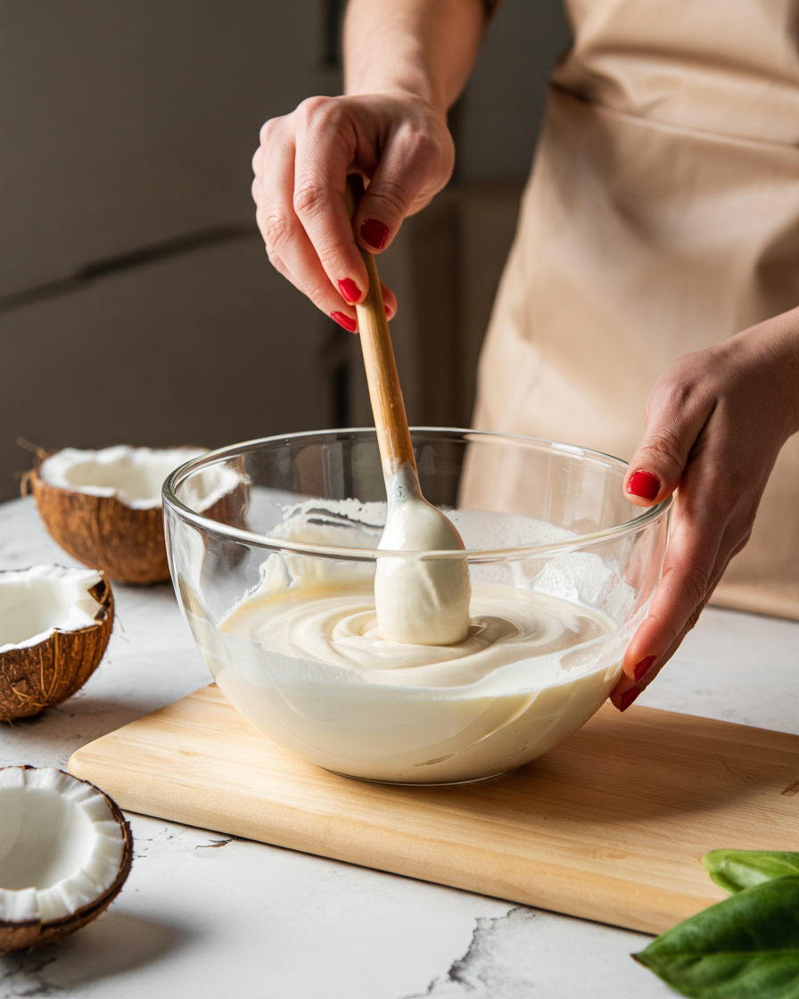 Add coconut yogurt to a mixing bowl and stir briefly to smooth.