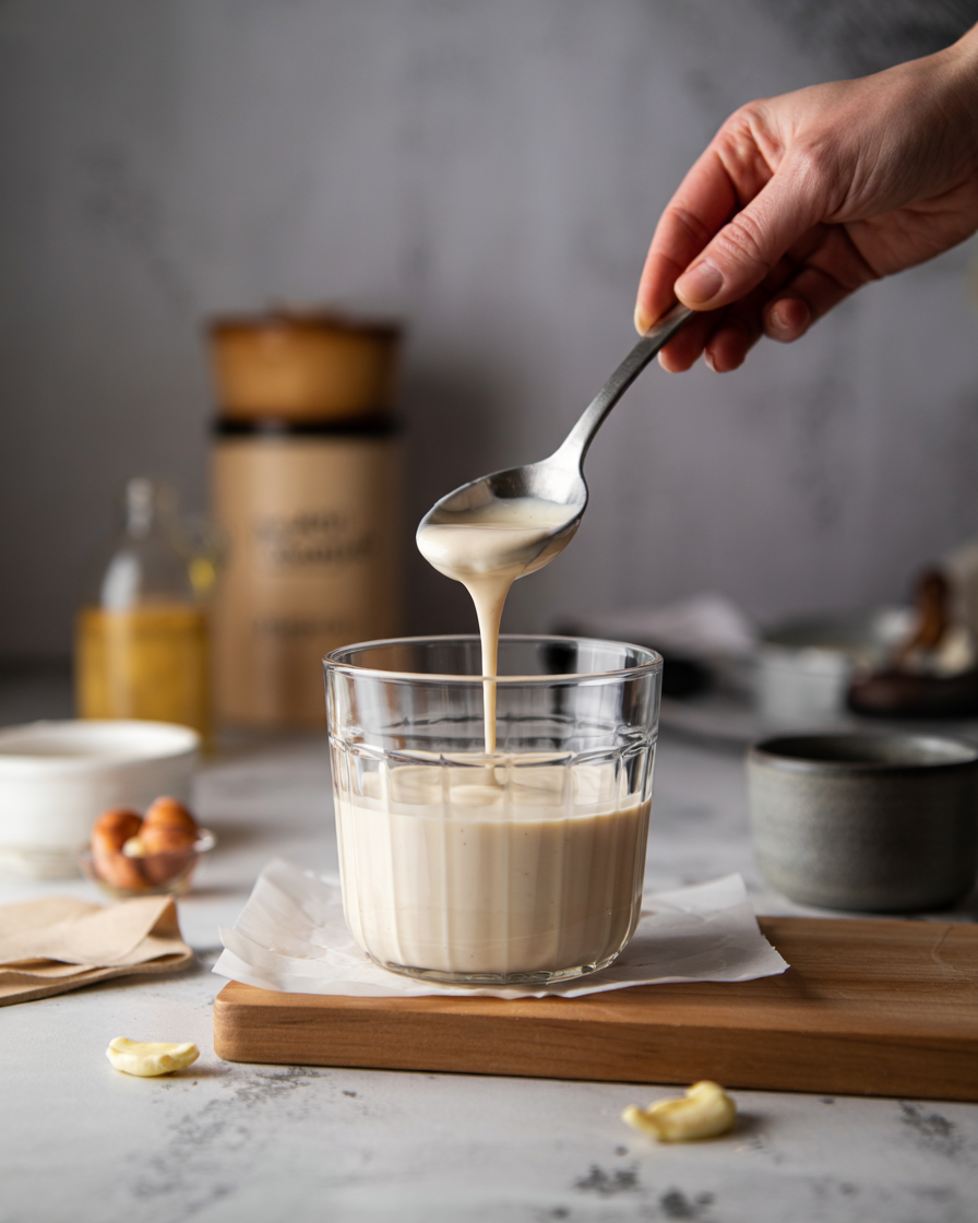 If needed, add 1–2 teaspoons of water or plant milk to loosen the mixture slightly while keeping it thick and creamy.