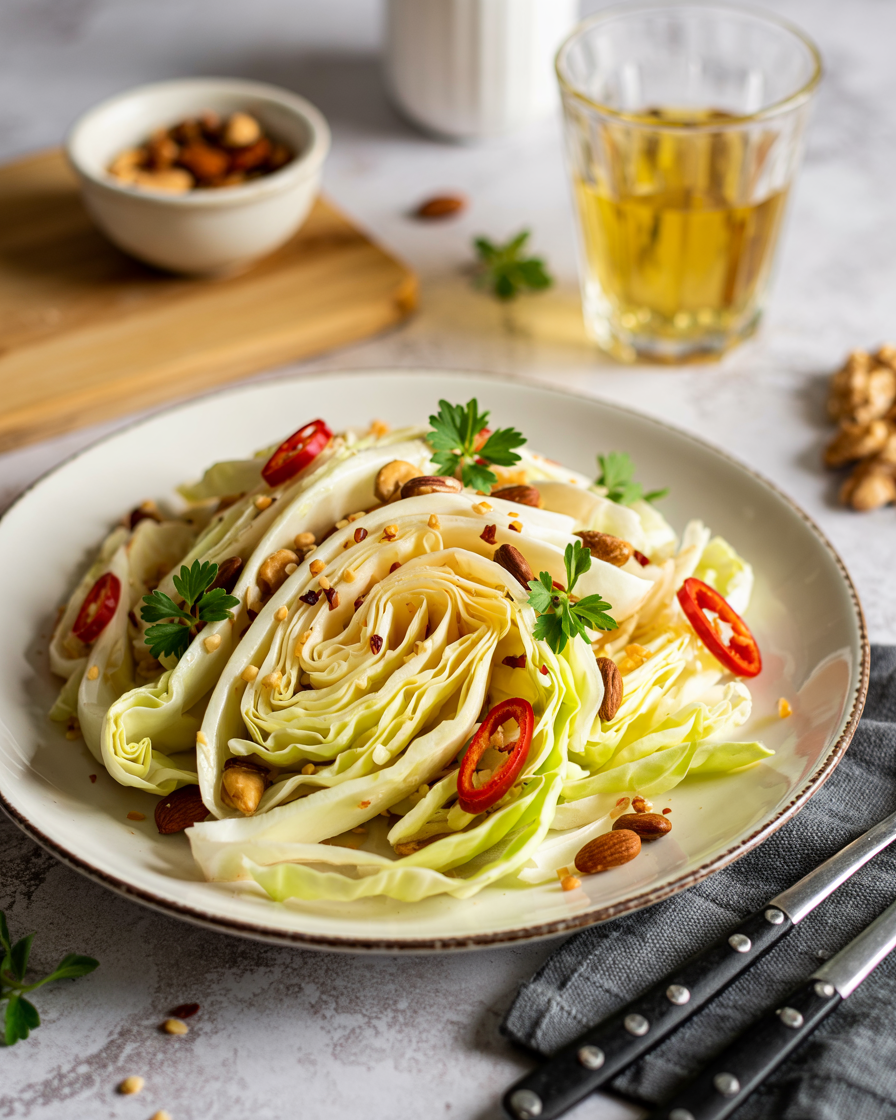 The success of this salad depends on thin slicing. The thinner the cabbage, the better the texture and dressing absorption. Sesame oil provides depth, lime adds brightness, and maple syrup balances acidity.