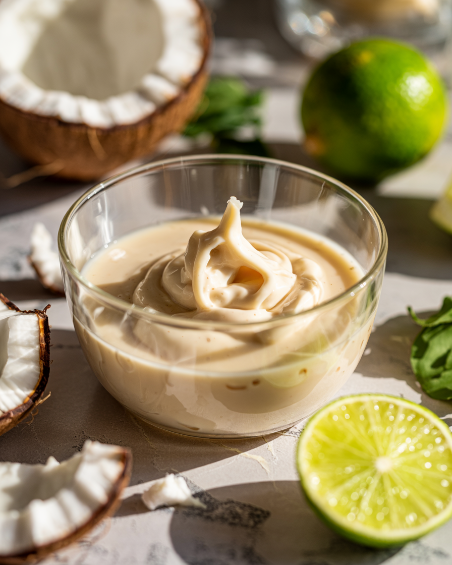 While your serving bowls are chilling in the freezer, place the drained silken tofu, full-fat coconut milk, pure maple syrup, and the juice of half the lime into a small high-speed blender or food processor. Blend on the absolute highest setting for sixty seconds until the mixture transforms into a thick, glossy, perfectly smooth, bright white cream.